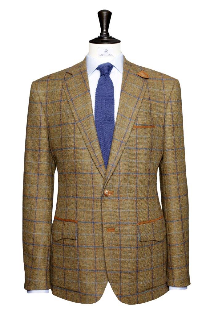 Le tissu de cette veste est issu de la liasse « Sherry Tweed » de la maison anglaise Holland & Sherry qui propose des tissus moins rustiques que les Harris Tweeds classiques. Il s’agit d’une laine de 310 grammes assez souple produite en Écosse. On pourra trouver des tissus similaires dans les collections de tissus de chez Huddersfield, Bateman, W. Bill ou Abraham Moon.